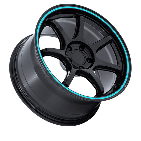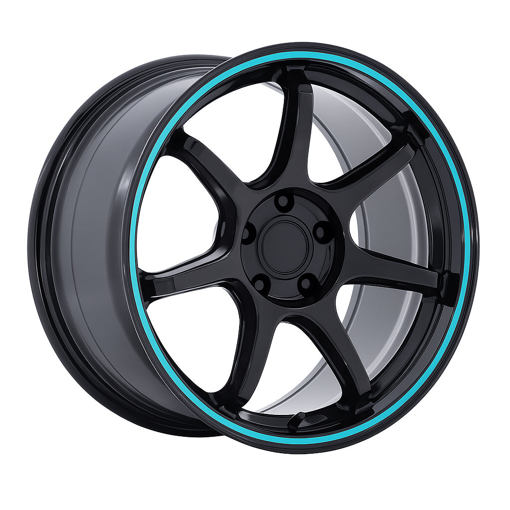 AxisRide AR7 Track Wheel – 18x8.5 ET35 5x112 – Gloss Black w/ Teal Ring