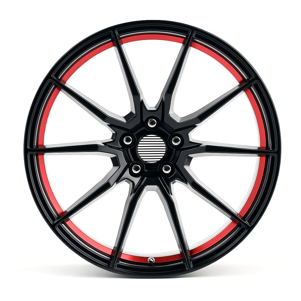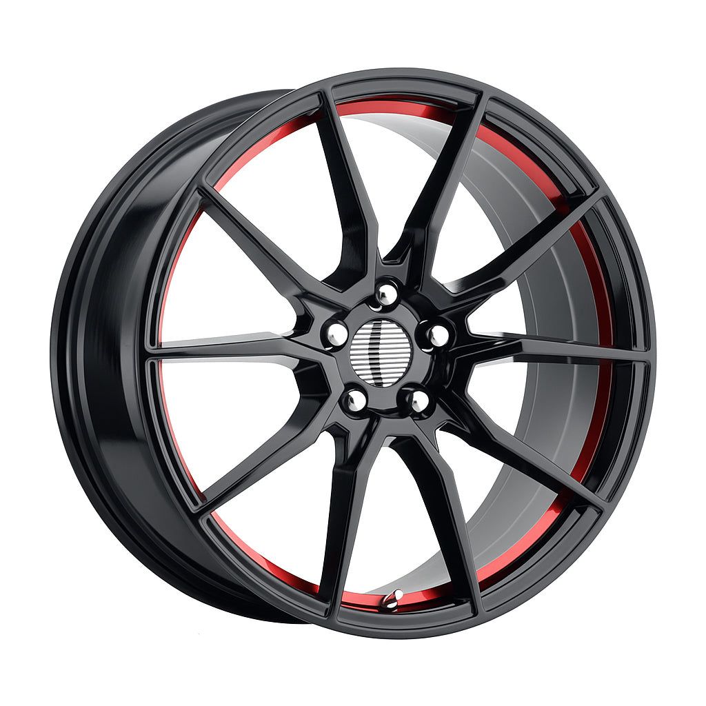 ExoRace XR10 Split-Spoke – 20x10 ET40 5x114.3 – Gloss Black w/ Red Accents